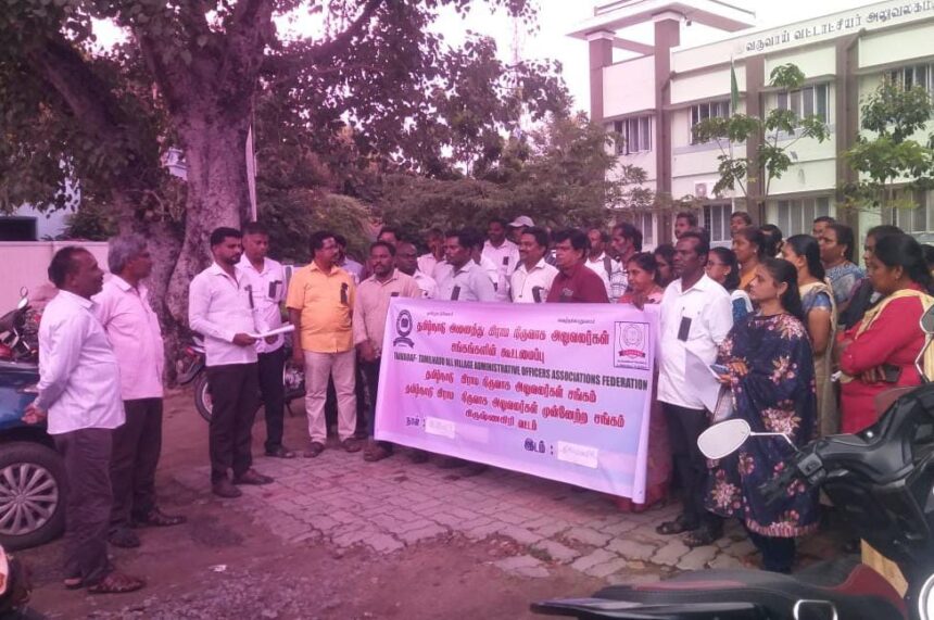 தமிழ்நாடு கிராம நிர்வாக அலுவலர்கள் முன்னேற்ற சங்க மாவட்ட தலைவர் ஆ.பூபதி ஆகியோர் தலைமையில் நடைபெற்றது,