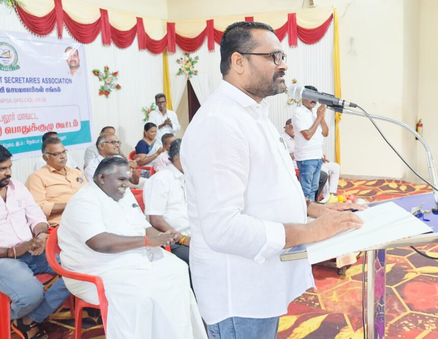 கிராம ஊராட்சியில், பணிபுரியும் ஊராட்சி செயலர்களுக்கு அரசு கருவூலம் மூலம் ஊதிய வழங்கிட வேண்டும். பணியில் இருந்து உயிரிழந்த ஊராட்சி செயலர்களின் வாரிசுதாரர்களுக்கு கருணை அடிப்படையில் பணி வழங்க வேண்டும். ஊராட்சியில் காலியாக உள்ள ஊராட்சி செயலர்களின் பணியிடங்களை உடனே நிரப்பிட வேண்டும் என்பன உள்ளிட்ட தீர்மானங்கள் நிறைவேற்றப்பட்டன.