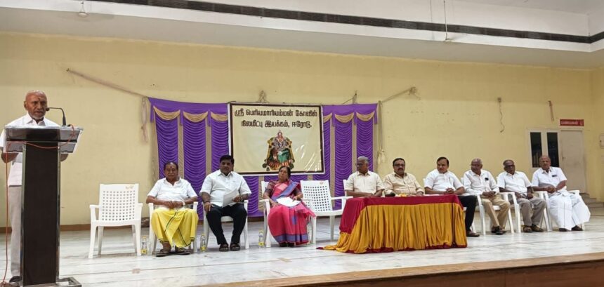 ஈரோடு ஸ்ரீ பெரிய மாரியம்மன் கோவில் நிலமீட்பு இயக்கம் சார்பாக தொடுத்த வழக்கில் சட்ட ரீதியிலான வெற்றியை கொண்டாடும் விதமாக ஈரோடு பெருந்துறை சாலை பரிமளம் மஹாலில் நிகழ்ச்சி நடைபெற்றது.