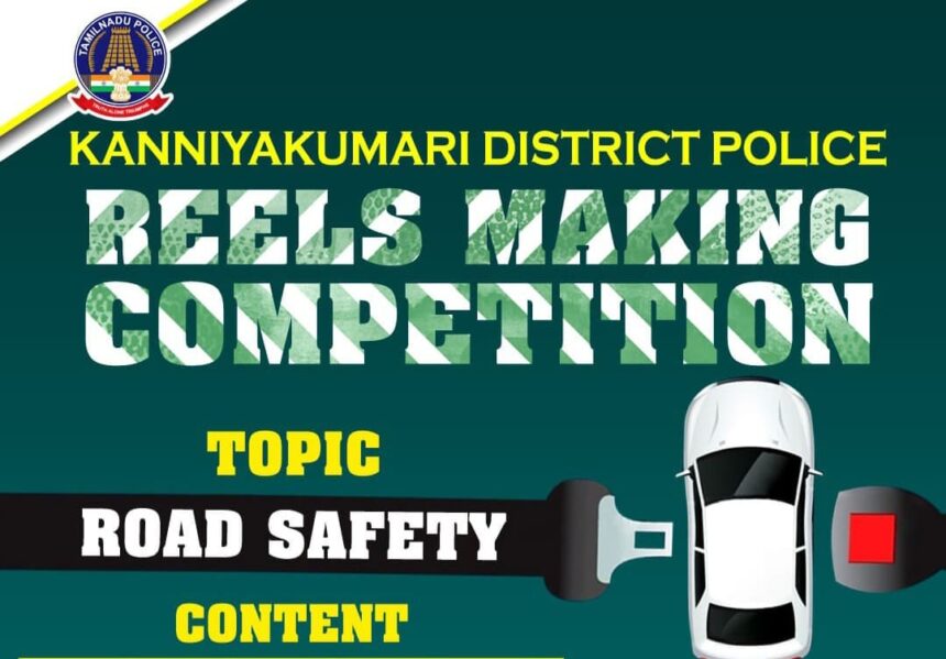 உள்ளிட்ட சாலை பாதுகாப்பு கருப்பொருள்களில் ஆக்கப்பூர்வமான வெளிப்பாட்டை ஊக்குவிக்கும் வகையில், ரீல்ஸ் போட்டியை கன்னியாகுமரி மாவட்ட காவல்துறை நடத்துகிறது.