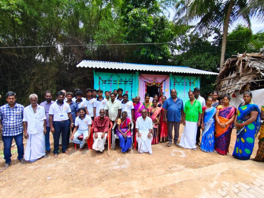 சீர்காழி அருகே செம்பியன் வேலங்குடி கிராமத்தில் பாழடைந்த குடிசையில் வசித்த மாற்றத்திறனாளி குடும்பத்திற்கு ரூபாய் 2.25 லட்சம் மதிப்பீட்டில் பாதுகாப்பான வீடு கட்டிக் கொடுத்த சமூக ஆர்வலர். திறப்பு விழா செய்து புத்தாடை மற்றும் மளிகை பொருட்களை வழங்கிய சமூக ஆர்வலருக்கு கிராம மக்கள் பாராட்டு.