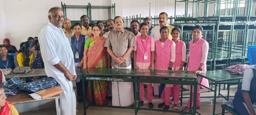 இக்கல்லூரியில் கடந்த முறை நடைபெற்ற மகளிர் தின விழாவில் பங்கேற்ற போது, இங்கு படிக்கும் மாணவி ஒருவர் வகுப்பறையில் மாணவ, மாணவிகள் படிப்பதற்கு ஏதுவாக போதுமான டெஸ்க் மற்றும் பெஞ்சுகள் இல்லாமல் இருக்கிறது. எனவே மாணவ, மாணவிகளின் நலன் கருதி எங்களது கல்விக்கு உதவிடும் வகையில் உரிய வசதிகளை ஏற்படுத்தி தர வேண்டுமென தைரியமாக என்னிடம் கோரிக்கை வைத்தார்.