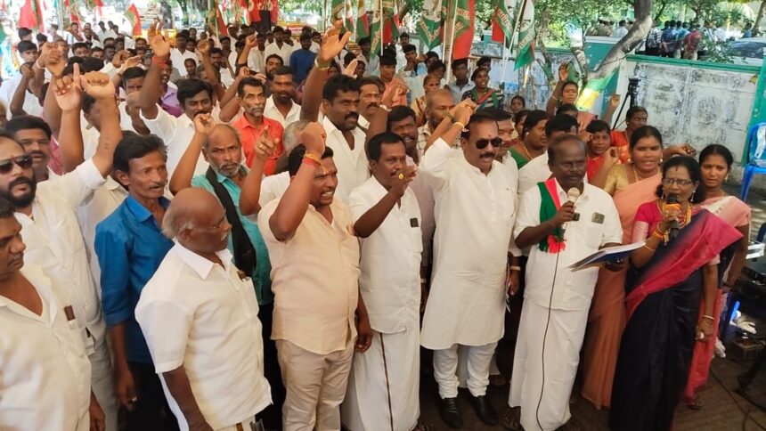 வளரும் தமிழகம் கட்சியின் மாநிலத் தலைவர் டாக்டர் பாலை .பட்டாபிராமன் தலைமையில் நடைபெற்ற இந்த கண்டன ஆர்ப்பாட்டத்தில் சென்னை மண்டல செயலாளர் அழகர்சாமி முன்னிலைவகித்தார்.