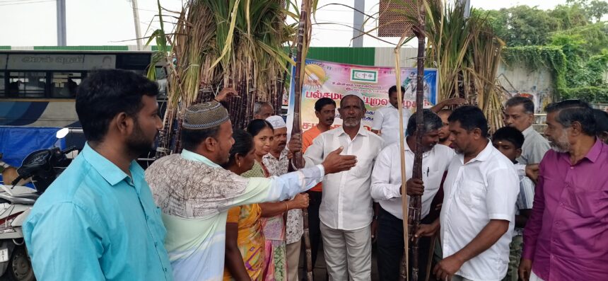 திருப்பூர் பழைய பேருந்து நிலையம் எதிரில் பல் சமய நட்புறவு கழகத்தின் சார்பில் தொப்புள் கொடி உறவுகளான அனைத்து தரப்பு மக்களுக்கும் தை திருநாளாம் பொங்கல் திருநாளை முன்னிட்டு சமத்துவ பொங்கல் கரும்பு வழங்கும் நிகழ்வில் அனைத்து தரப்பு மக்களுக்கும் கரும்பு வழங்கி வாழ்த்துக்களை நிர்வாகிகள் பகிர்ந்து கொண்டனர்.