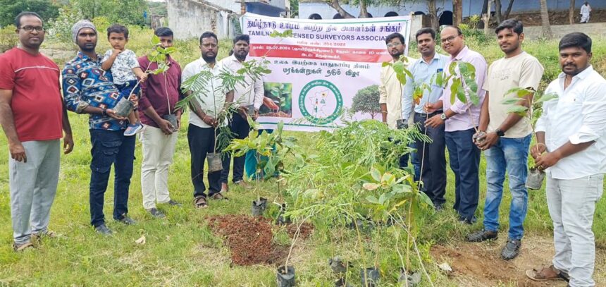 கிருஷ்ணகிரி மாவட்டம் அகச்சிப்பள்ளி ஊராட்சி கணவாய்பட்டி அருள்மிகு வெங்கட்ரமணா சாமி திருக்கோவில் வளாகத்தில் உலக இயற்கை பாதுகாப்பு தினத்தை முன்னிட்டு தமிழ்நாடு உரிமம் பெற்ற நில அளவர்கள் சங்கம் சார்பில் மரக்கன்றுகள் நடும் விழா நடைபெற்றது. மாநிலத் தலைவர் நா.சத்தியநாராயணன் தலைமை தாங்கினார், மாநில பொதுச் செயலாளர் வெற்றிவேல், மாநில பொருளாளர் கார்த்திகேயன், மாநில துணைத்தலைவர் ஆனந்த், மாநில துணை பொருளாளர் சுரேஷ் ஆகியோர் முன்னிலை வகித்தனர். சிறப்பு அழைப்பாளராக மாநில முன்னாள் துணைத் தலைவர் ஜெயக்குமார், செயற்குழு உறுப்பினர்கள் நந்தகுமார், மொக்கைசாமி உள்பட கபிலன், சத்தியமூர்த்தி மற்றும் கோவில் நிர்வாகிகள் கலந்து கொண்டு 100 மரக்கன்றுகளை நட்டனர். மேலும் தற்போது பல இடங்களில் மரங்களை அழித்து இயற்கை வளங்களை பாதுகாக்க தவறுகின்றனர். இதுபோன்ற மரக்கன்றுகளை வளர்த்து, எதிர்வரும் சந்ததியினருக்கு நல்ல ஆரோக்கியமான வழிகாட்டுதலாக தமிழ்நாடு நிலஅளவாளர்கள் சங்கத்தின் சார்பில் இதுபோன்ற மரக்கன்று நட்டு பொதுமக்களுக்கு விழிப்புணர்வு ஏற்படுத்தும் வகையில் நாங்கள் செயல்படுத்தி வருவதாக மாநில தலைவர் சத்திய நாராயணன் கூறினார். ஆண்டுத் தோறும் புரட்டாசி மாதத்தில் ஆயிரக்கணக்கான பக்தர்கள் வருகை தரும் இந்த கோவிலில் பொதுமக்கள் பயன்பெறும் வகையில் 100 மரக்கன்றுகள் நடவும் நிகழ்வை பலரும் பாராட்டி, வாழ்த்துக்களை தெரிவித்தனர்