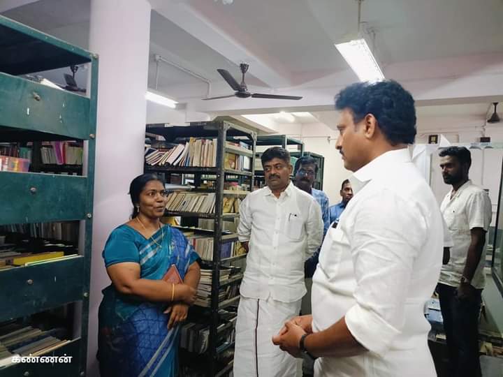 இராமநாதபுரத்தில் உள்ள மாவட்ட மைய நூலகத்தை பள்ளி கல்வி துறை அமைச்சர் அன்பில் மகேஷ் பொய்யாமொழிபார்வையிட்டார் மேலும் நடைபெற்றும் பணிகளை ஆய்வுசெய்தார் உடன்