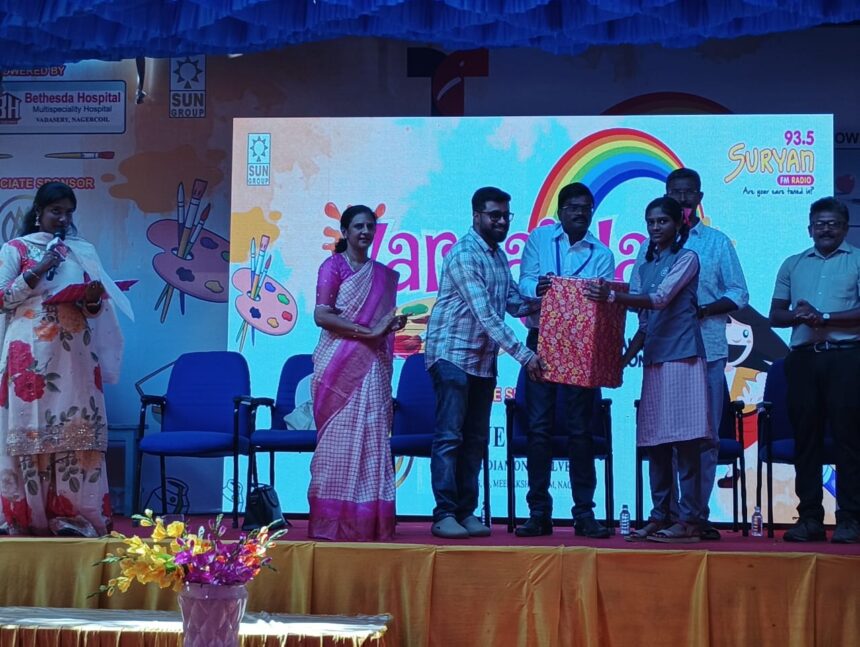 மாவட்ட அளவிலான வர்ண ஜால  மெகா  ஓவியப் போட்டியில் களியக்காவிளை அரசு உயர்நிலைய் பள்ளி மாணவிக்கு இரண்டாம் பரிசு கிடைத்துள்ளது.