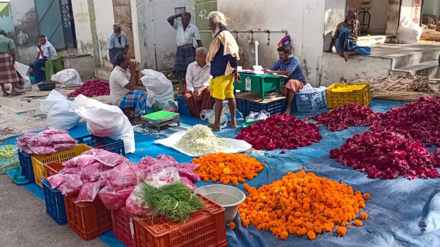 விநாயகர் சதுர்த்தியை முன்னிட்டு கன்னியாகுமரி மாவட்டத்தில் பிரசித்தி பெற்ற தோவாளை மலர் சந்தையில் பூக்களின் விற்பனை அதிகரித்துள்ளது,