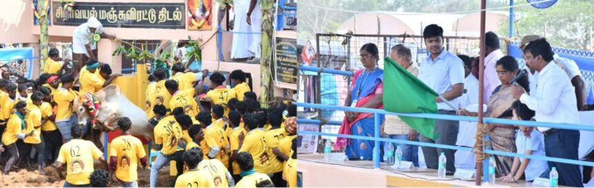 சிவகங்கை மாவட்டத்தில் உலகப் புகழ்பெற்ற சிறாவயல் மஞ்சுவிரட்டு: கொடியசைத்து துவக்கி வைத்த மாவட்ட ஆட்சியர்
