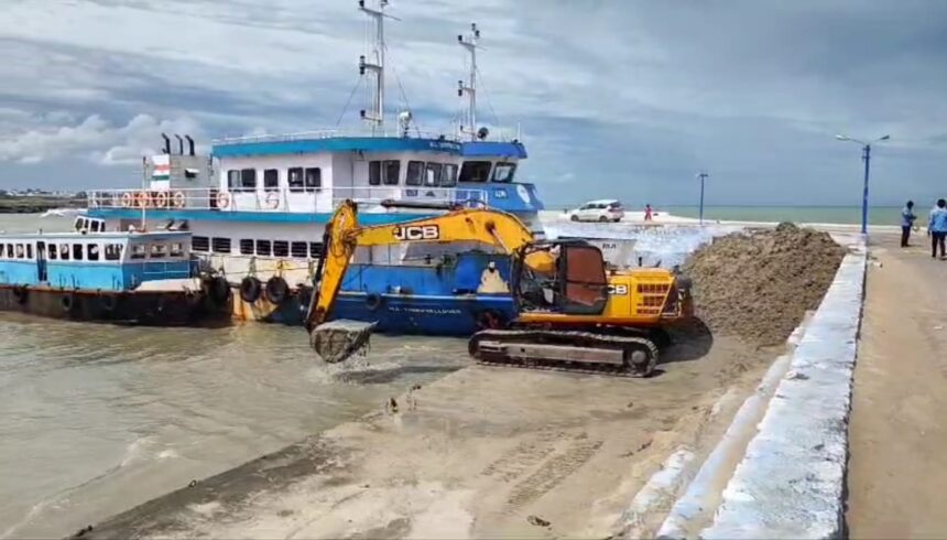 கன்னியாகுமரி படகுதுறையில் படகு நிறுத்த வசதியாக கடல் பகுதியிலும், பேரலையினால் கரை பகுதிகளில் ஏற்படும்மண் திட்டுகளையும் சரி செய்யும் பணி அண்மையில் நடைபெற்றது. கன்னியாகுமரி கடலில் அமைந்துள்ள விவேகானந்தாமண்டபம், திருவள்ளுவர்சிலை ஆகியவற்றை காண தினந்தோறும் ஆயிரக்கணக்கான உள்நாடு மற்றும் வெளிநாடுகளை சேர்ந்த சுற்றுலா பயணிகள் வந்து செல்வது வழக்கம். அப்படி வரும் சுற்றுலாபயணிகள் விவேகானந்த மண்டபத்தை பார்வையிட வசதியாக பூம்புகார் கப்பல் போக்குவரத்து கழகம் சார்பில் படகு சேவை நடத்தப்பட்டு வருகிறது. படகு நிறுத்தும் இடத்தில் கடல் ஆழப்படுத்தும் பணி அண்மையில் தான் நடைபெற்றது. இதற்காக ராட்சஷ இயந்திரங்கள் பயன்படுத்தப்பட்டது. தற்போது கடல் சீற்றம் காரணமாக ஏற்படும் அலையினால் படகு தளத்தில் மணல் சேர்ந்து திட்டாக மாறிவிடுவதால் படகு நிறுத்துவதற்கு மிகுந்த சிரமம் ஏற்பட்டது. இதனையடுத்து அப்பகுதியில் தேங்கி கிடக்கும் மணல் மேடுகளை அவ்வப்போது பூம்புகார் கப்பல் போக்குவரத்து கழகம் மாற்றி வருகிறது. அதன் ஒரு பகுதியாக நேற்றும் பூம்புகார் கப்பல் போக்குவரத்து கழக படகு குழாமில் சுற்றுலா படகுகள் நிறுத்தும் தளத்தில் கடலின் இயற்கை மாறுபாடு காரணமாக ஏற்பட்ட மணல் திட்டுகளை அகற்றும் பணி ஜெசிபி இயந்திரம் மூலமாக நடைப்பெற்றது.
