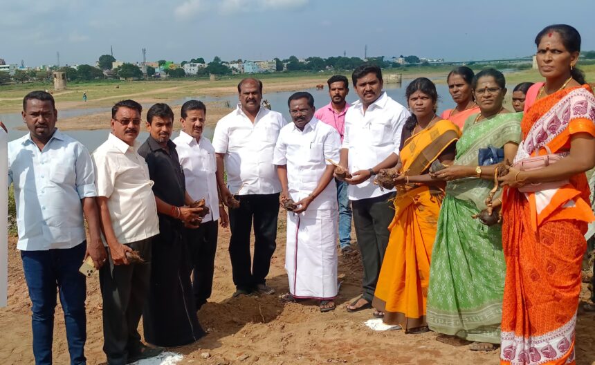 பரமக்குடியில் உதயநிதி ஸ்டாலின் பிறந்த நாளை முன்னிட்டு மகளிர் அணி சார்பாக வைகை கரையோரத்தில் பனை விதை விதைக்கும் பணியை எம் எல் ஏ முருகேசன் தொடங்கி வைத்தார்.