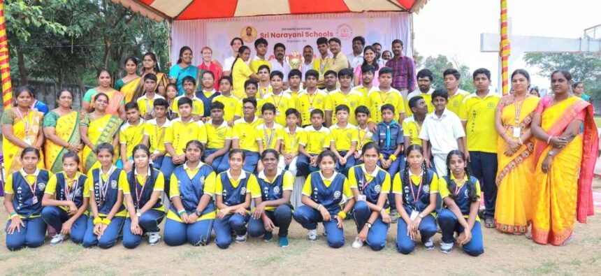 வேலூர் மாவட்டம் ஸ்ரீ சக்தி அம்மா அருளாசியுடன் ஸ்ரீ நாராயணி பள்ளிகளில் 11.01.2025 அன்று வியைாட்டு தின விழா நடைப் பெற்றது. இவ்விழாவிற்கு சிறப்பு அழைப்பாளராக விளையாட்டுத் துறை நிர்வாக அலுவலர் முனைவர் ஏ.பாலமுருகன் மற்றும் மூத்த இந்திய கிரிக்கெட் வர்ணணையாளர் ரவிசதுர்வேதி அவர்களும் கலந்து கொண்டு அணிவகுப்பு மரியாதையை ஏற்றுக் கொண்டார்கள் மற்றும் சிறப்புரையாற்றி மாணவர்களுக்கு பரிசுகள் வழங்கினார்கள். முனைவர் எம்.சுரேஷ்பாபு தாளாளர் அவர்கள் தலைமை தாங்கினார். பள்ளிகளின் முதல்வர்கள் கே.சுப்பிரமணி மற்றும் லட்சுமி ஆகியோர் பங்குபெற்றனர். முனைவர். ச.ரமேஷ் தலைமை ஆலோசகர் வாழ்த்துரை வழங்கினார். விளையாட்டு தின விழாவை முன்னிட்டு பல்வேறு விளையாட்டு போட்டிகள் மற்றும் கலை நிகழ்ச்சிகள் நடத்தப்பட்டு வெற்றிப் பெற்ற மாணவர்களுக்கு பரிசுகள் மற்றும் சான்றிதழ்கள் வழங்கப்பட்டன. இவ்விழாவில் துணை முதல்வர்கள், அனைத்து ஆசிரியர்கள், மாணவர்கள், பெற்றோர்களும் மற்றும் வெளிநாட்டுவாழ் பக்தர்களும் கலந்து கொண்டனர். இவ்விழாவினை நிர்வாக அலுவலர் ஆதிகேசவன் ஏற்பாடு செய்து இருந்தார்.