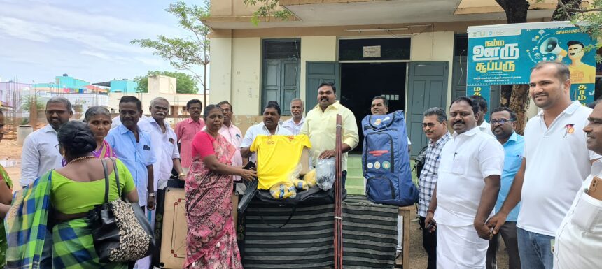 ஊராட்சி மன்ற தலைவர்களுக்கு கலைஞர் விளையாட்டு உபகரணங்கள் வழங்கும் நிகழ்ச்சி தமிழ்நாடு முதலமைச்சர் மு க ஸ்டாலின் திமுக தலைவர் உத்தரவின்படி திமுக இளம் தலைவர் மாண்புமிகு துணை முதல்வர் உதயநிதி ஸ்டாலின் வழங்கிய கலைஞர் விளையாட்டு உபகரணங்கள் தென்காசி வடக்கு மாவட்ட செயலாளர் சங்கரன்கோவில் சட்டமன்ற உறுப்பினர் ராஜா ஈஸ்வரன்