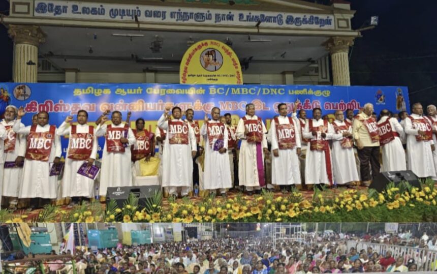 திண்டுக்கல்லில் கிறிஸ்தவ வன்னியர்களுக்கு மிகவும் பிற்படுத்தப்பட்டோர் MBC இட ஒதுக்கீடு பெற்றிட வலியுறுத்தி மாநில மாநாடு நிகழ்ச்சி திண்டுக்கல் மேட்டுப்பட்டியில் உள்ள பாஸ்கு மைதானத்தில் நடைபெற்றது. இந்த மாநாடு நிகழ்ச்சிக்கு திண்டுக்கல் மறைமாவட்ட ஆயரும், தமிழக ஆயர் பேரவையின் BC/MBC/DNC பணிக்குழு தலைவருமான P.தாமஸ் பால்சாமி தலைமை தாங்கி பேசியதாவது , மதத்தின் பெயரால் உரிமைகள் மறுக்கப்படுவது அநீதியாகும். இந்திய அரசியலமைப்பு ஒருவர் எந்த மதத்தையும் சார்ந்து இருக்கலாம் என்ற உரிமையை வழங்கி உள்ளது. அப்படி இருக்கும் போது மதத்தின் பெயரால் உரிமைகள் மறுக்கப்படுவது அந்த மக்களை வஞ்சிப்பதற்கு சமமாகும். தமிழகத்தில் மிகவும் பின்தங்கிய நிலையில் கிறிஸ்தவ வன்னியர்கள் வாழ்ந்து வருகிறார்கள். இவர்களுக்கு கிடைக்க வேண்டிய மிகவும் பிற்படுத்தப்பட்டோருக்கான உரிமை மறுக்கப்பட்டு வருகிறது. முதலமைச்சர் மு.க.ஸ்டாலின் தேர்தல் பிரச்சாரத்தின் போது கிறிஸ்தவ வன்னியர்களை மிகவும் பிற்படுத்தப்பட்டோர் பட்டியலில் சேர்க்க நடவடிக்கை எடுக்கப்படும் என்று வாக்குறுதி அளித்தார். அந்த வாக்குறுதியை இன்று வரை நிறைவேற்ற வில்லை எனவே தேர்தலுக்கு முன்பாக சட்டமன்றத்தில் தீர்மானம் நிறைவேற்றி கிறிஸ்தவ வன்னியர்களை மிகவும் பிற்படுத்தப்பட்டோர் பட்டியலில் சேர்க்க வேண்டும். இல்லையென்றால் எங்களது செயற்குழுவை கூட்டி தேர்தலில் யாருக்கு வாக்களிக்க வேண்டும் என்பதை முடிவு செய்வோம் என பேசினார். திண்டுக்கல் மறை மாவட்ட முதன்மைக்குரு பேரருள்பணி T. சகாயராஜ் செயலக முதல்வர் பேரருள்பணி A.தாமஸ் ஜான்பீட்டர் ஆகியோர் முன்னிலை வகித்தனர். ஜோ. ஆர்தர், A.ஜேசுதாஸ், விமல், K.ஜான்கென்னடி ஆகியோர் கலந்து கொண்டு விழிப்புணர்வு பாடல் பாடினார்கள். மேட்டுப்பட்டி சௌந்தர் நற்செய்தி வாசித்தார். மேட்டுப்பட்டி அருள்பணி V. செல்வராஜ் இறைவேண்டல் செய்தார். திண்டுக்கல் மறை மாவட்ட BC/MBC/DNC பணிக்குழு செயலாளர் அருள்பணி S. அருள் ரூபேஷ் வரவேற்புரை ஆற்றினார். தமிழக ஆயர் பேரவையின் BC/MBC/DNC பணிக்குழு மாநிலச் செயலாளர் பேரருள்பணி A. சாம்சன் ஆரோக்கியதாஸ் கலந்து கொண்டு மாநாட்டின் நோக்கம் குறித்து பேசினார். திண்டுக்கல் சமூக ஆர்வலர் S. நிக்கோலஸ் கிறிஸ்தவ வன்னியர்களின் இன்றைய பொருளாதாரச் சூழல் குறித்து பேசினார். பழனி அருள் பணி ஏ .எர்னெஸ்ட் அந்தோணிசாமி கல்வி வேலைவாய்ப்பில் கிறிஸ்தவ வன்னியர்களின் நிலை குறித்து பேசினார். திண்டுக்கல் கிறிஸ்தவ வன்னியர் இளைஞர் இயக்க தலைவர் ச. ஜஸ்டின்திரவியம் அரசியலில் கிறிஸ்தவ வன்னியர்களின் நிலை குறித்து பேசினார். கடலூர் BC/MBC/DNC பணிக்குழு அருள்பணி எல்.ஜோசப் ராஜ் கிறிஸ்த
