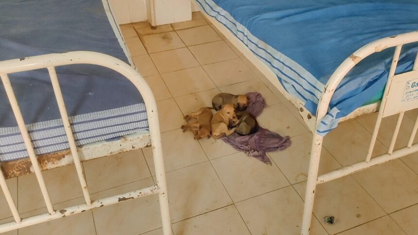 அரசு மருத்துவமனையில் ஆண்களுக்கான சிகிச்சை பிரிவில் குட்டிகளை ஈன்ற தெரு நாய்.மருத்துவர் பற்றாக்குறையாலும் சுகாதார சீர்கேட்டாலும் அவதிப்பட்டு வரும் நோயாளிகள்