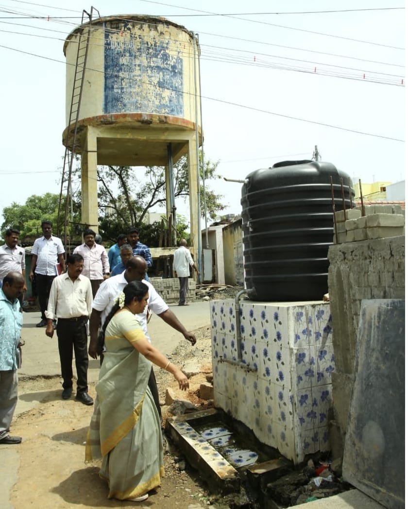 மதுரை மாநகராட்சி மண்டலம் 4 வார்டு எண்.41 ஐராவதநல்லூர் பகுதியில் மேயர் இந்திராணி பொன்வசந்த் வளர்ச்சித் திட்டப் பணிகள் குறித்து ஆய்வு மேற்கொண்டார். அருகில் கண்காணிப்பு பொறியாளர் முகம்மது சபியுல்லா, மாமன்ற உறுப்பினர் செந்தாமரைக்கண்ணன் ஆகியோர் உடன் உள்ளனர்.