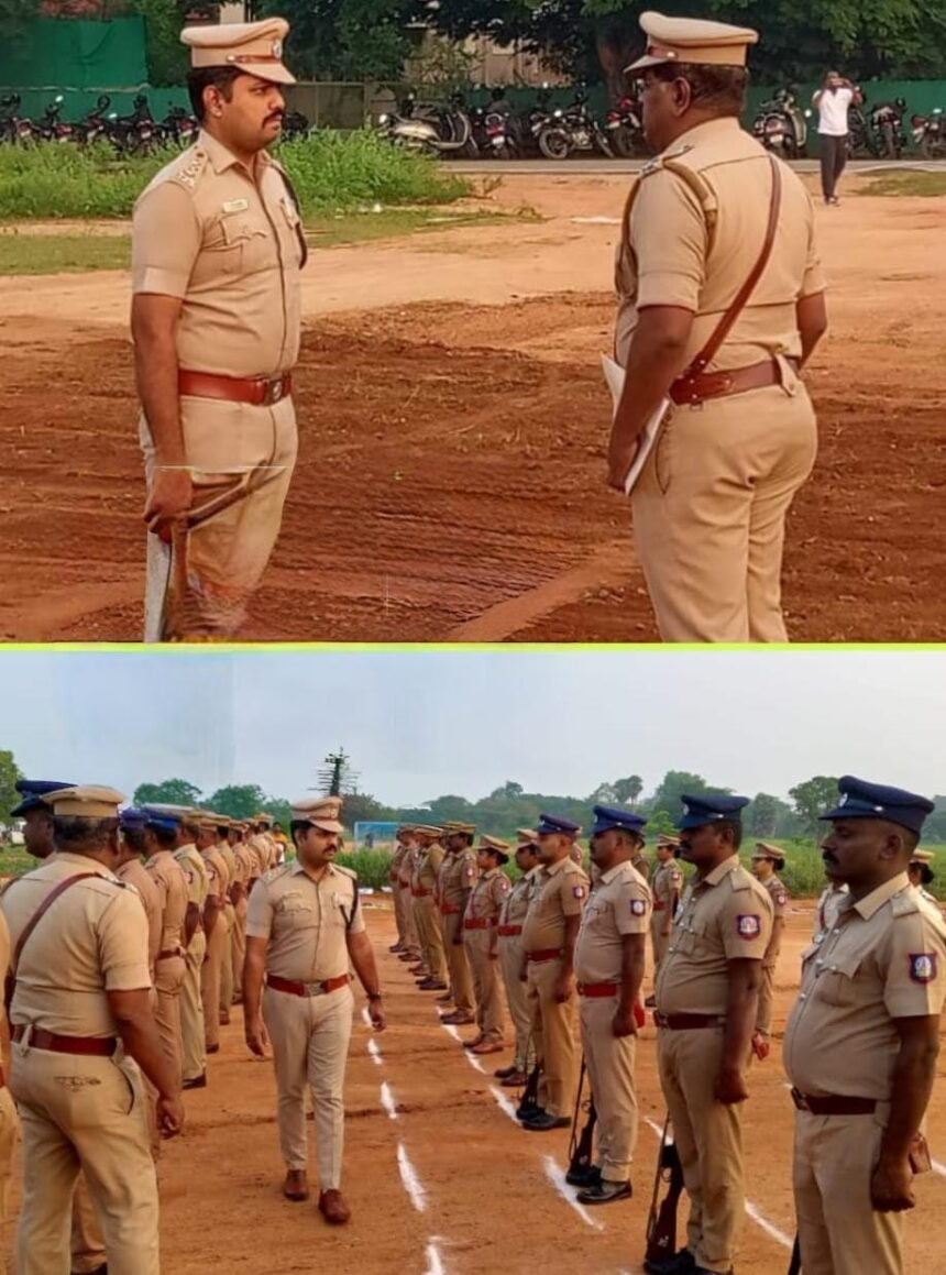 புறநகர் உட்கோட்ட காவல்துறையினரின் கவாத்து பயிற்சியை புறநகர் டிஎஸ்பி சிபிசாய் சௌந்தர்யன் பார்வையிட்டு அறிவுரை வழங்கினார்!
