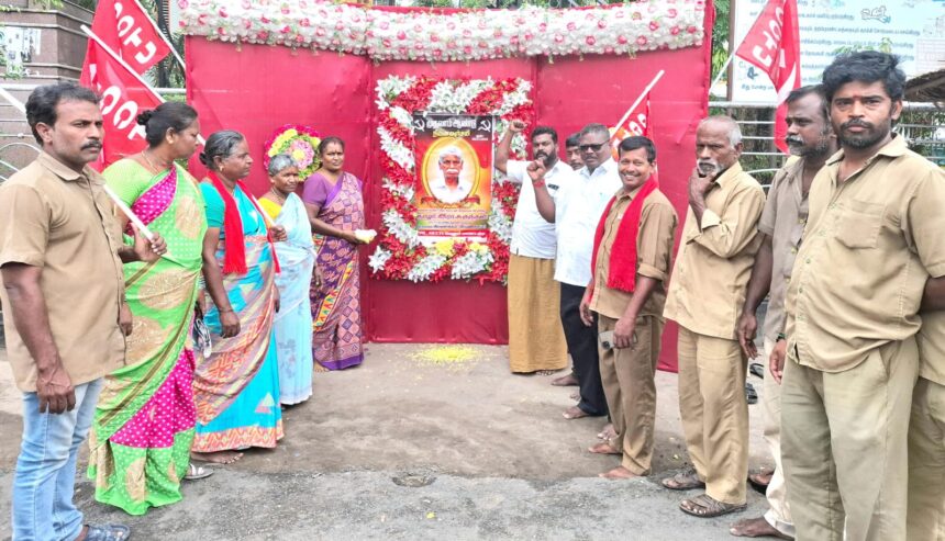 வேலூர் மாவட்டம், ஏஐசிசிடியு தொழிற் சங்கத்தின் மாநில முன்னாள் துணைத்தலைவர் சுகந்தன் முதலாம் ஆண்டு நினைவு நாள் முன்னிட்டு பழைய மாநகராட்சி அலுவலகம் அருகில் அவரது திருவுருவ படத்திற்கு மலர்மாலை அணிவித்து மரியாதை செலுத்தி நினைவஞ்சலி செலுத்தப்பட்டது. நிகழ்ச்சியில் மாவட்டத் தலைவர் ஏழுமலை தலைமை தாங்கினார், மாவட்ட பொதுச் செயலாளர் சீ.அ.சிம்புதேவன் சிபிஐஎம்எல் மாவட்டச் செயலாளர், சரோஜா, விவசாய சங்க மாவட்ட செயலாளர் ஏ. மாணிக்கம்,பெண்கள் அமைப்பு மாவட்ட தலைவர்,ஆர்.பாத்திமா, மாவட்ட குழு தோழர்கள்,மகேஷ்வரி,புவனேஸ்வரி,குமார்,செந்தில்நாதன்,மற்றும் ஆட்டோ சங்கத் தோழர்கள் ஏராளமான கலந்து கொண்டு வீரவணக்கம் செலுத்தினர்…