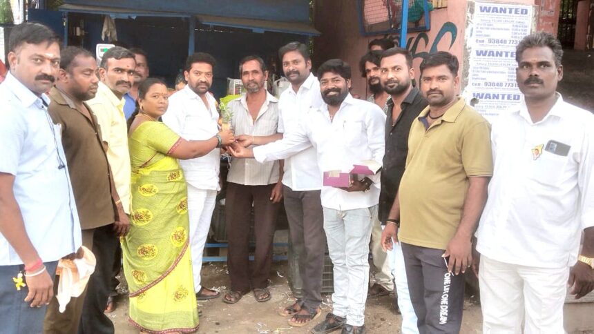 வேலூர் மாவட்டம், வேலூர் அடுத்த விருதம்பட்டு பேருந்து நிலையம் அருகில் தமிழக வெற்றிக் கழகம் தலைவர் விஜய் 50வது பிறந்த நாள் விழாவினை முன்னிட்டு கேக் வெட்டி இனிப்பு வழங்கி , பொது மக்களுக்கு மரக்கன்று வழங்கும் நிகழ்ச்சி 15 வது வார்டு நிர்வாகிகள் கே சிலம்பரசன் சமூக ஆர்வலர் DR. வி மகேஷ்குமார் மைதிலி கண்ணன் ஆகியோர் முன்னிலையில் நடைபெற்றது . இதில் சிறப்பு அழைப்பாளர்கள் காட்பாடி கே .வி .குப்பம், சட்டமன்றத் தொகுதி பொறுப்பாளர்கள் நவீன் ,பி. செந்தில்குமார் கே. கருணாகரன் , சாரங்கன் ஆகியோர் கலந்து கொண்டு பொதுமக்களுக்கு மரக்கன்றுகள் வழங்கினர் உடன் தரணி ,சேண்டி என்கிற செந்தில்குமார், காதர் ,மற்றும் தமிழக வெற்றி கழகம் நிர்வாகிகள் பலர் கலந்து கொண்டனர்.