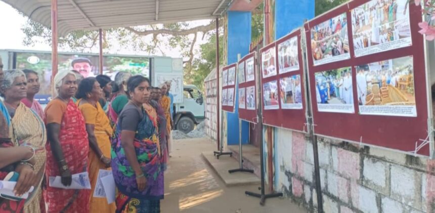 தமிழ்நாடு முதலமைச்சரின் தலைமையிலான அரசு கிருஷ்ணகிரி மாவட்டத்தில் அனைத்து துறைகள் சார்பில் செயல்படுத்தப்பட்ட பல்வேறு திட்டங்கள் மற்றும் அரசு நலத்திட்ட உதவிகள் வழங்கியது குறித்து புகைப்படங்கள் மூலம் பொதுமக்களிடம் விழிப்புணர்வு ஏற்படுத்தும் வகையில் செய்தி மக்கள் தொடர்புத்துறை சார்பில் புகைப்படக் கண்காட்சி கிருஷ்ணகிரி ஊராட்சி ஒன்றியம், மேகலசின்னம்பள்ளி கிராமத்தில் அமைக்கப்பட்டது.