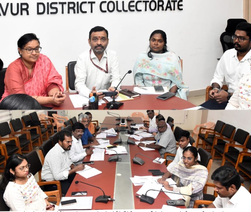 தஞ்சாவூர் மாவட்டத்தில் நடை பெறும் வாக்காளர் பட்டியல் சிறப்பு தீவிர திருத்த பணி தொடர்பாக தஞ்சாவூர், ஒரத்தநாடு, பட்டுக் கோட்டை, பேராவூரணி, திருவையாறு , பாபநாசம், திருவிடைமருதூர் கும்பகோணம் ஆகிய 8 சட்டசபை தொகுதிகளுக்கு உட்பட்ட வாக்கா ளர் பதிவு அலுவலர்களுக்கான ஆய்வுக் கூட்டம் மாவட்ட கலெக்டர் அலுவலகத்தில் நடைபெற்றது.