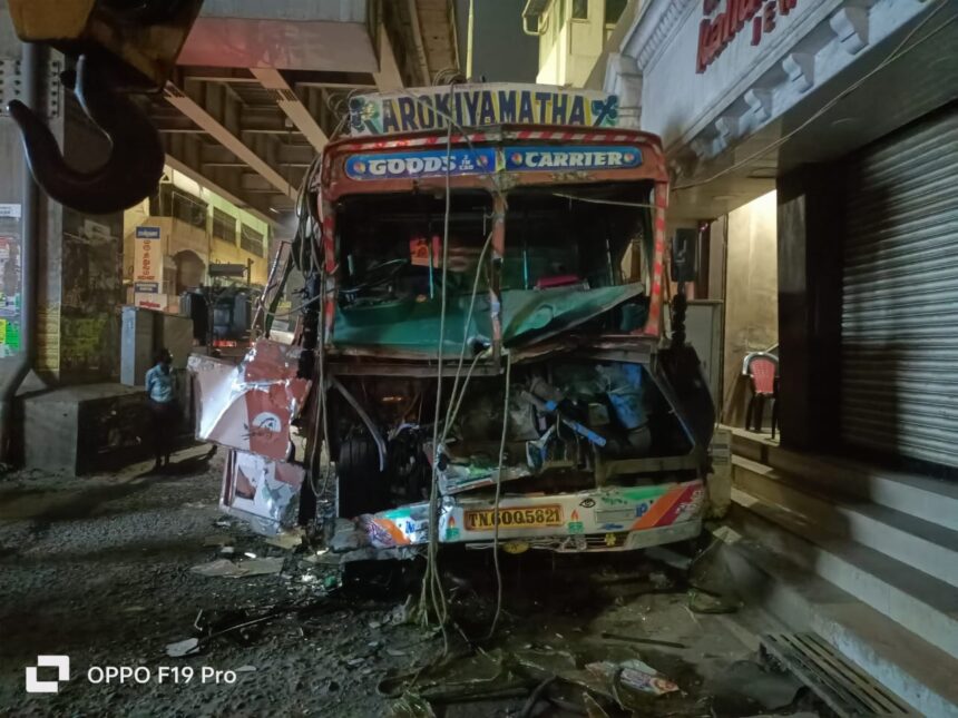 தூதூத்துக்குடியில் இருந்து சர்க்கரை ஏற்றிக்கொண்டு கேரளாவுக்கு லாரி சென்று கொண்டிருந்தது. லாரியை அருமனை பகுதியை சேர்ந்த கிறிஸ்டோபர் ( 52) என்பவர் ஓட்டி சென்றார். திடீரென லாரியில் பிரேக் பிடிக்கவில்லை. இதனால் அந்த லாரி நிலை தடுமாறி முன்னால் சிமெண்ட் லோடு ஏற்றி சென்று கொண்டிருந்த மற்றொரு லாரி மீது பயங்கரமாக மோதியது.