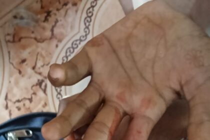 காயம் பட்ட மாணவனின் ரத்த காயத்துடன் கூடிய புகைப்படம்