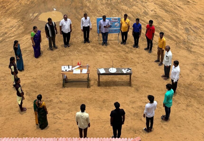 தமிழ்நாடு அஸ்ட்ரானமி சயின்ஸ் சொசைட்டி சார்பில் அகத்தீஸ்வரம் விவேகானந்தா கல்லூரியில் நிழல் இல்லா நாளை முன்னிட்டு நிழல் இல்லா நேரத்தை கண்டறிந்தனர்.