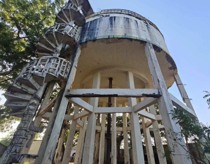 மேல்நிலைத் தொட்டியும் படிக்கட்டும் சேதமடைந்து உள்ளது