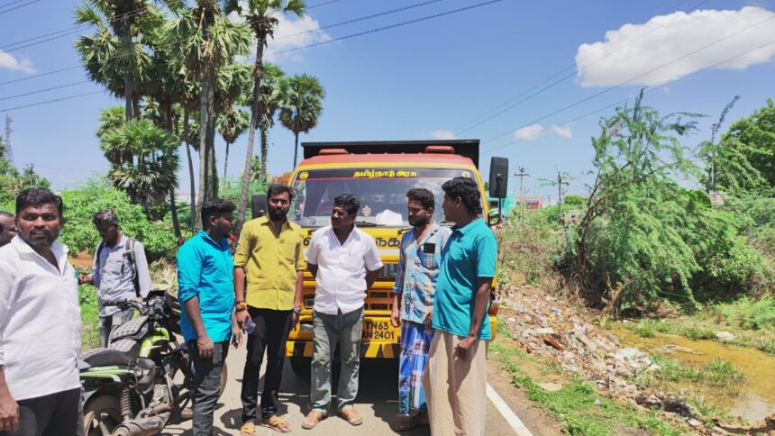 இந்நிலையில் இந்தப் பகுதியில் குப்பைகளை கொட்டும் போது சிபி- காலனி பொதுமக்கள் அங்கு வந்து இங்கு குப்பைகளை கொட்டக் கூடாது என தடுத்து நிறுத்தி வேனை சிறைப் பிடித்தனர் .