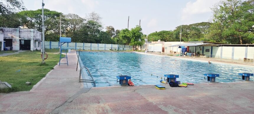 மதுரை மாநகராட்சி நீச்சல் குளம் கடந்த 2021- ஆம் ஆண்டுக்கு முன்பு எந்த வித பராமரிப்பின்றி, அடிப்படை வசதிகள் மற்றும் கழிப்பறை