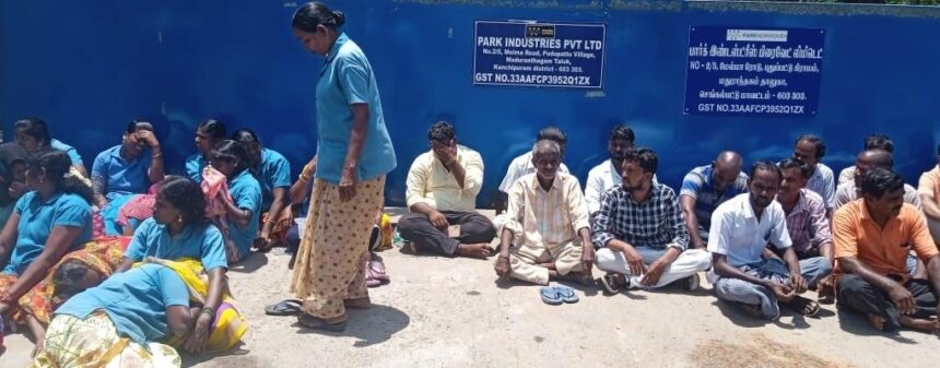 மதுராந்தகம் அருகே தொழிற்சாலை முன்பு போராட்டத்தில் ஈடுபட்ட தொழிலாளர்கள் அடுத்தடுத்து மயக்கம் அடைந்து விழுந்ததால் பரபரப்பு