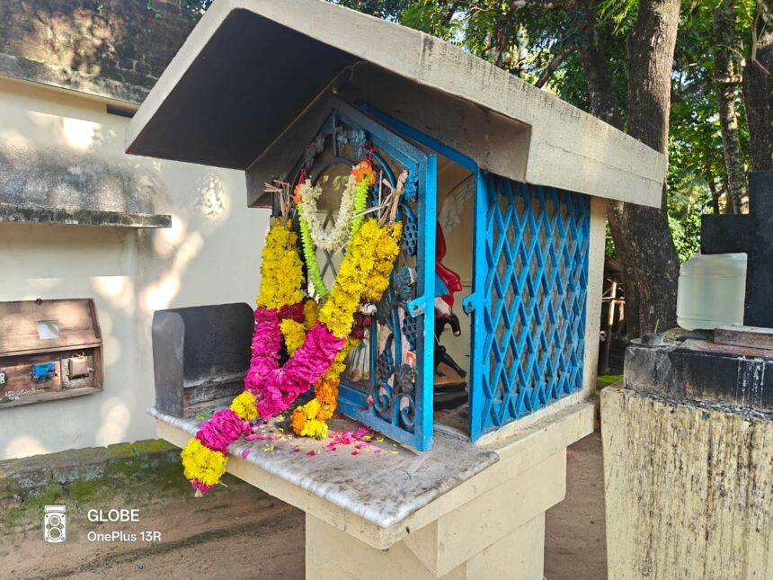இது குறித்து அவர்கள் ஆலய நிர்வாகத்திற்கு தகவல் தெரிவித்தனர். ஆலய நிர்வாகிகள் இரணியல் காவல் நிலையத்தில் புகார் தெரிவித்தனர். புகாரின் பேரில் சம்பவ இடம் வந்த போலீசார் அப்பகுதியில் உள்ள சிசிடிவி காட்சிகளை கைப்பற்றி விசாரணை நடத்தி வருகின்றனர்.