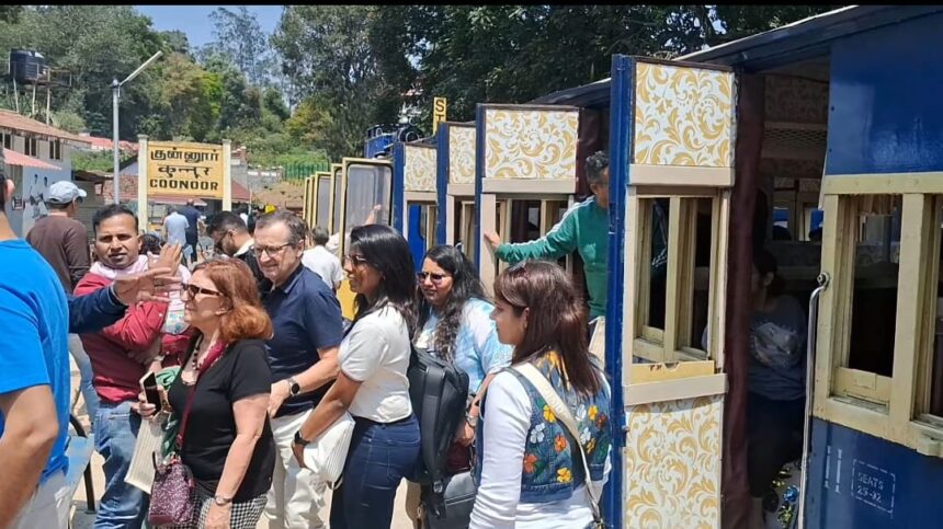 நீலகிரி மாவட்டம் குன்னூரில் மலை ரயிலை வாடகைக்கு எடுத்து வந்த மருத்துவக் குழுவினர் எட்டு நாடுகளை சேர்ந்த மருத்துவக் குழுவினர் மலை ரயிலில் உற்சாக பயணம்.