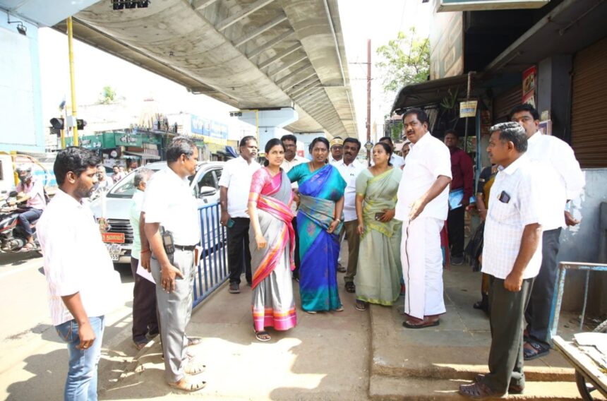 மதுரை மாநகராட்சி நத்தம் மெயின் ரோடு, திருப்பாலை மற்றும் நாராயணபுரம் ஆகிய பகுதியில் பாதாள சாக்கடை பணிகள் மேற்கொள்வது குறித்து வணிகவரி மற்றும் பதிவுத்துறை அமைச்சர் பி.மூர்த்தி நேரில் பார்வையிட்டு ஆய்வு மேற்கொண்டார் அருகில் மதுரை மாவட்ட ஆட்சித் தலைவர் மா.சௌ.சங்கீதா, மாநகராட்சி ஆணையாளர் சித்ரா விஜயன், சோழவந்தான் சட்டமன்ற உறுப்பினர் வெங்கடேசன், மண்டலத் தலைவர் வாசுகி மற்றும் மாநகராட்சி அலுவலர்கள் ஆகியோர் உடன் உள்ளனர்.