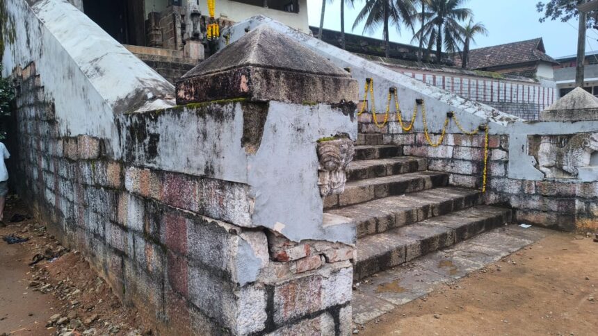 திருவட்டார் ஆதிகேசவப்பெருமாள் கோவிலில் கனரக வாகனம் மோதி படிக்கட்டு பக்க சுவர் சேதம்; ஓடுகள் பெயர்ந்து விழும் நிலையில் கோவில்….நடவடிக்கை எடுக்க கோரிக்கை
