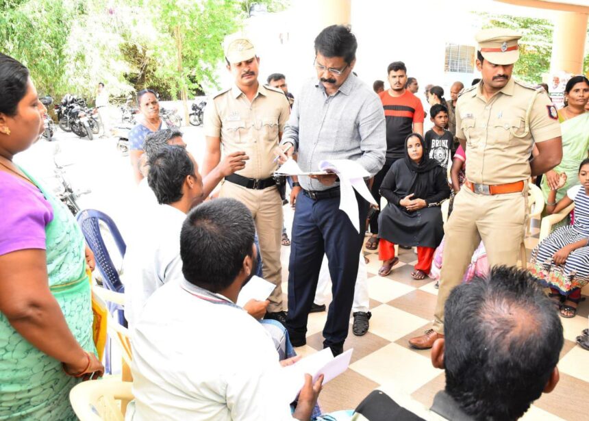 திருப்பத்தூர் மாவட்ட ஆட்சியர் அலுவலக கூட்டரங்கில் நடைபெற்ற மக்கள் குறைதீர்வு கூட்டத்தில் மாற்றுத்திறனாளிகளிடமிருந்து பல்வேறு கோரிக்கை மனுக்களை மாவட்ட ஆட்சித் தலைவர் தர்ப்பகராஜ் பெற்றுக்கொண்டார். உடன் சம்பந்தப்பட்ட துறை அலுவலர்கள் உள்ளனர்.