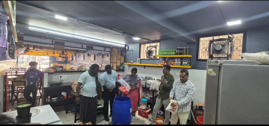 ஆய்வில் உணவகங்கள் மற்றும் துரித உணவகங்கள் சாலையோர உணவு கடைகளில் மேற்கொள்ளப்பட்ட ஆய்வில் உணவகங்களின் உட்புற சுத்தம் பணியாளர்களின் சுய சுத்தம் தயாரிக்கப்படும் இடம் அவற்றின் சுகாதாரம் மற்றும் உணவுப் பொருட்களின் காலாவதி தேதி தயாரிப்பு தேதி தயாரிப்பாளர் முழு முகவரி ஆகியவை உள்ளதா என கண்டறியப்பட்டது.