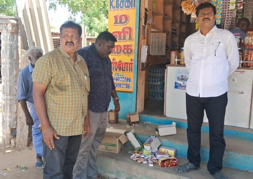 ராமநாதபுரம் மாவட்டம் ஏர்வாடி அரசு மேல்நிலை பள்ளி அருகே தடை செய்யப்பட்ட புகையிலை பொருட்கள் விற்பனை செய்ய அரசு விதித்துள்ளது. இது தொடர்பாக கோட்ட ஆய அலுவலர் முருகேசன் தலைமையில் வருவாய்த்துறையினர் கீழக்கரை – ஏர்வாடி முக்கு ரோடு பகுதிகளில் திடீர் ஆய்வு செய்தனர்.