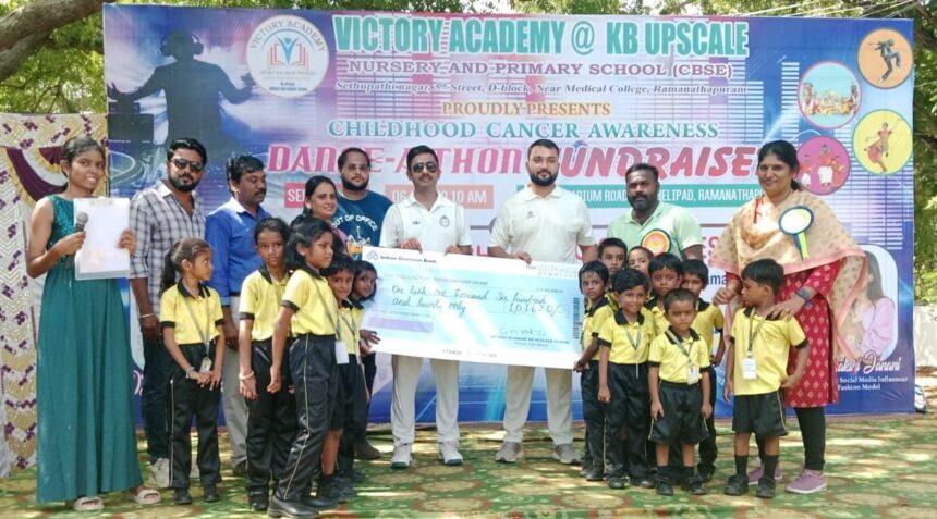 ராமநாதபுரம் மாவட்ட ஆட்சியர் வளாகத்தில் விளையாட்டு மைதானம் அருகே நடைபெற்ற இந்த கேன்சரால் பாதிக்கப்பட்ட குழந்தைகளை மீட்கும் உதவிக்காக நிதி திரட்டும் தொன் நடனம் நிகழ்ச்சியை ராமநாதபுரம் விக்ட்டர் அகாடமி பள்ளியின் தாளாளர் ஜி.எம்.முரளி பள்ளி செயலாளர் மாலதி முரளி ஆகியோர் தலைமையில் பள்ளி ஆசிரியர்கள் செய்திருந்தனர்.