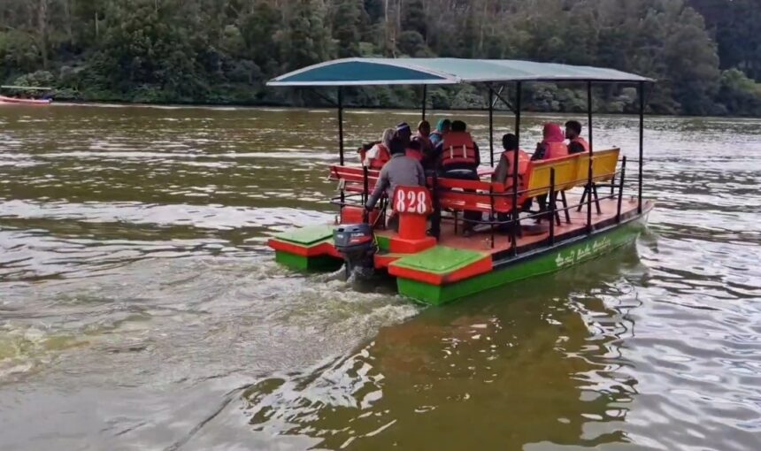 நீண்ட வரிசையில் காத்திருந்து படகுகளில் குடும்பத்துடன் சவாரி செய்து மகிழ்ந்து வரும் சுற்றுலா பயணிகள் இதமான கால நிலையில் ஏரியில் படகு பயணம் செய்து மகிழ்ந்தனர்.