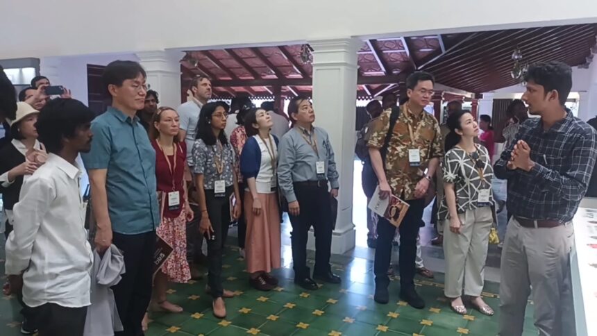 இவற்றை கொண்டு கீழடியில் இரண்டு ஏக்கர் பரப்பளவில் தனித்தனி கட்டிட தொகுதிகளில் 13 ஆயிரத்து 834 பொருட்கள் காட்சிப்படுத்தப்பட்டுள்ளன. இந்திய நாட்டின் கலாச்சாரம் பண்பாடு பழக்க வழக்கங்கள் பற்றி வெளிநாட்டினர் அறிந்து கொள்ளும் வண்ணம் தமிழக சுற்றுலா வளர்ச்சி கழகம் சார்பில் சிறப்பு சுற்றுலா ஏற்பாடுகள் செய்யப்பட்டு வருகின்றன. அதன்படி பிலிப்பைன்ஸ் ஆஸ்திரேலியா ஜெர்மன் கொரியா ஜப்பான் டென்மார்க் உள்ளிட்ட நாடுகளைச் சேர்ந்த 22 ஆண், பெண் சுற்றுலா பயணிகள் தென்மாவட்டங்களில் உள்ள பாரம்பரியம் மிக்க கோயில்கள் சுற்றுலா தளங்கள் தொழிற்சாலைகள் ஆகியவற்றை பார்வையிட்டு வருகின்றனர். கீழடியில் கடந்தாண்டு திறக்கப்பட்ட உலக தரம் வாய்ந்த அருங்காட்சிகத்தை காண சிறப்பு பேருந்தில் சுற்றுலா பயணிகள் அழைத்து வரப்பட்ட்னர்.