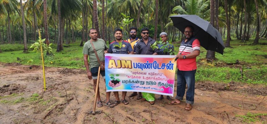 கன்னியாகுமரி மாவட்டம் ஈத்தங்காடு பகுதியில் ஏ ஜே எம் பவுண்டேஷன் தன்னார்வல அறக்கட்டளை  சார்பில் மரக்கன்றுகள் நடப்பட்டது.