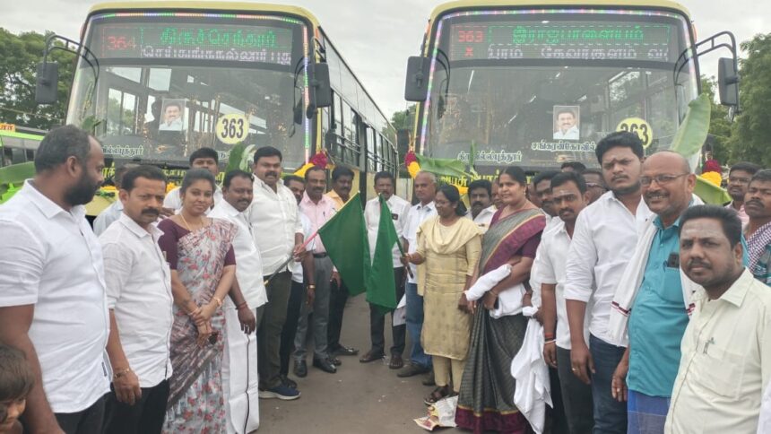 சங்கரன்கோவில் அரசு போக்குவரத்து பணிமனைக்கு தமிழ்நாடு அரசு போக்குவரத்து துறை சார்பில் புதியதாக 2 நவீன ரக பேருந்துகள் வழங்கப்பட்டது. இதனை பயணிகள் பயன்பாட்டிற்கு துவக்கி வைக்கும் நிகழ்ச்சி தற்காலிக பேருந்து நிலையத்தில் வைத்து நடந்தது. நிகழ்ச்சிக்கு திருநெல்வேலி போக்குவரத்து கழக கூட்டாமை வணிக துணை மேலாளர் சுப்பிரமணியன் தலைமை வகித்தார். திருநெல்வேலி போக்குவரத்து துறை சட்ட உதவி மேலாளர் மாரியப்பன், சங்கரன் கோவில் போக்குவரத்து பணிமனை மேலாளர் பாலசுப்பிரமணியன், சங்கரன்கோவில் நகராட்சி சேர்மன் உமா மகேஸ்வரி, நகர செயலாளர் பிரகாஷ், தொமுச மண்டல அமைப்பு செயலாளர் மைக்கேல் நெல்சன் முன்னிலை வகித்தனர். இந்த நிகழ்ச்சியில் தென்காசி வடக்கு மாவட்ட திமுக செயலாளர் ராஜா எம்எல்ஏ , தென்காசி நாடாளுமன்ற உறுப்பினர் டாக்டர் ராணி ஸ்ரீகுமார் ஆகியோர் கலந்து கொண்டு 2 புதிய ரக பேருந்துகளை பொதுமக்கள் பயன்பாட்டிற்கு துவக்கி வைத்தனர். சங்கரன்கோவில் போக்குவரத்து பணிமனை தொமுச தலைவர் குருசாமிராஜ், செயலாளர் சங்கர் ராஜ், திமுக பொதுக்குழு உறுப்பினர் மகேஸ்வரி, விவசாய அணி துணை அமைப்பாளர் ஸ்ரீகுமார், நகர துணை செயலாளர் முத்துக்குமார், கவுன்சிலர்கள் விஜயகுமார் ,செல்வராஜ், ராஜாஆறுமுகம்,வீராச்சாமி, தொமுச சங்கரன்கோவில் கிளை நிர்வாகிகள் காந்திமதிநாதன் பண்டார கண்ணு உள்ளிட்ட பலர் கலந்து கொண்டனர்.