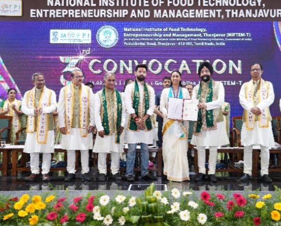 தஞ்சாவூரில் உள்ள தேசிய உணவு தொழில்நுட்பம் தொழில் முனைவு மற்றும் மேலாண்மை நிறுவனத்தின் (நிப்டம்) 3வது பட்டமளிப்பு விழா நடந்தது. விழா வில் மத்திய உணவு பதப்படுத்தும் தொழில் துறை மந்திரி சிராக் பாஸ்வான் கலந்துகொண்டு, பல்வேறு துறைகளில் சிறந்து விளங்கிய மாணவர்களுக்கு பதக்கங்கள் மற்றும் பட்டங்களை வழங்கினார்.
