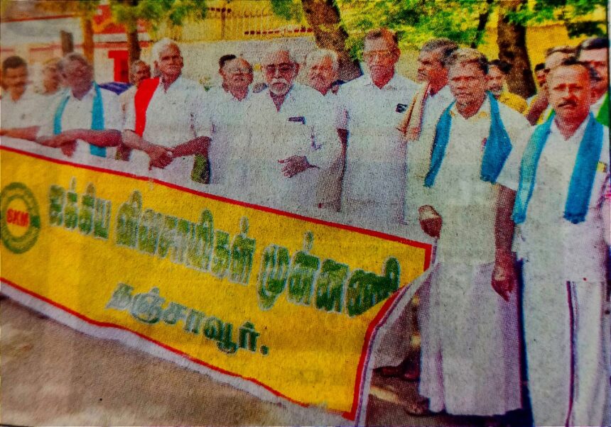 தஞ்சாவூர் தலைமை தபால் நிலை யம் அருகே ஐக்கிய விவசாயிகள் முன்னணி சார்பில் ஆர்ப்பாட்டம் நடந்தது .மாவட்ட ஒருங்கிணைப் பாளர் கண்ணன் தலைமை தாங்கி னார் .ஆர்ப்பாட்டத்தைதாளாண்மை உழவர் இயக்க நிறுவனர் திருநாவுக்கரசு தொடங்கி வைத்தார்.