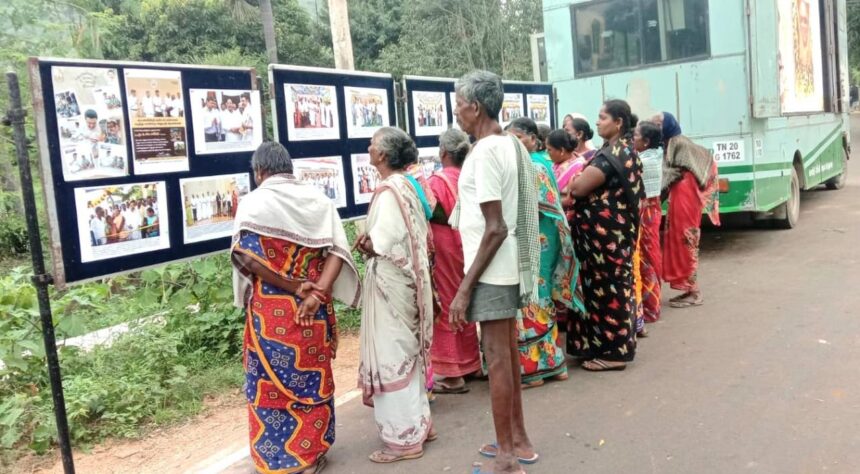 வேலூர் மாவட்டம், கே.வி.குப்பம் தாலுகா, நாகல் ஊராட்சி, கீழ்நாகல் கிராமத்தில் செய்தி மக்கள் தொடர்புத் துறை சார்பில் அமைக்கப்பட்ட மத்திய, மாநில அரசின் சாதனை விளக்க புகைப்படக் கண்காட்சியினை பொதுமக்கள் பார்வையிட்டனர்.