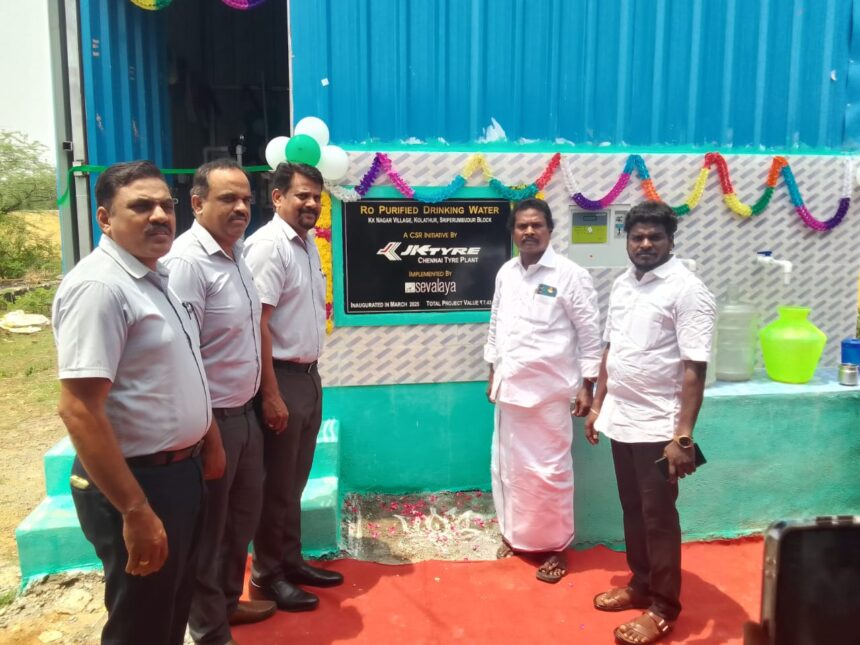 காஞ்சிபுரம் மாவட்டம் ஸ்ரீபெரும்புதூர் அடுத்த குளத்தூர் பகுதியில் இயங்கி வரும் ஜேகே டயர் தொழிற்சாலை சார்பில் சமூகப் பொறுப்புணர் திட்ட நிதி எண் கீழ் ரூபாய் 7.43 லட்சத்தில் புதிதாக குடிநீர் சுத்திகரிப்பு நிலையம் அமைக்கப்பட்டுள்ளது. இதன் திறப்பு விழாவிற்கு ஜேகே டயர் நிறுவனத்தின் சமூகப் பொறுப்புணர்வு திட்ட மேலாளர் சகாயராஜ் தலைமை வகித்தார். ஊராட்சி மன்றத் தலைவர் வல்லாரை அரிகிருஷ்ணன் கலந்து கொண்டு சுத்திகரிப்பு நிலையத்தை திறந்து வைத்தார்.