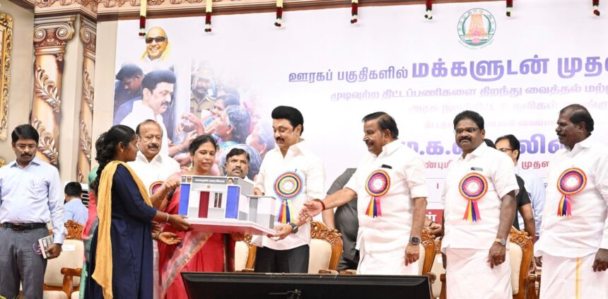 தமிழ்நாடு முழுவதும் பொதுமக்களின் தேவைகள் மற்றும் கோரிக்கைகள் குறித்து மனுக்களை பெற கிராமப் புறங்களுக்கான மக்களுடன் முதல்வர் திட்டம் தருமபுரி மாவட்டம் பாளையம்புதூர் அரசு மேல்நிலைப் பள்ளி வளிகத்தில் தமிழ்நாடு முதலமைச்சர் மு.க.ஸ்டாலின் தொடங்கி வைத்தார்.