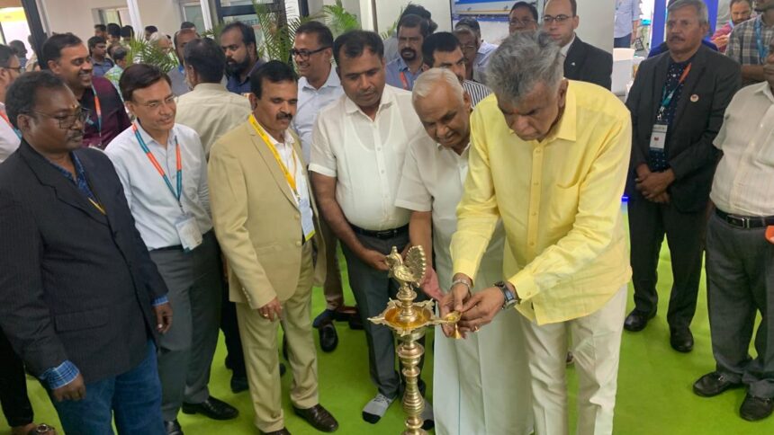 இந்தியா நிட் பேர் வளாகத்தில் யார்னெக்ஸ், டெக்ஸ் இந்தியா மற்றும் டைகெம் டெக்ஸ் பிராசஸ் ஆகிய முப்பெரும் தொழில் கண்காட்சி நேற்று தொடங்கியது. இதனை ஆயத்த ஆடை ஏற்றுமதி மேம்பாட்டு கழக தென் பிராந்திய பொறுப்பாளர் சக்திவேல் திறந்து வைத்து, கண்காட்சியை பார்வையிட்டார்.